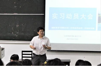 随后,政治系副主任李赪老师重申了毕业实习的目的和意义,并就下学期实习工作的相关安排及具体要求做了说明。她强调,毕业实习是大家从公司走向社会的必经之路,也是大学最后一年中非常重要的一项任务,希望所有同学都能够珍惜这次宝贵的学习机会。她还谈到,同学们代表着bevictor伟德国际的形象,希望大家都能够在实习中展现国务人的风采,一定要多请教、多思考,这样才能不断成长,实习归来都能够收获满满。