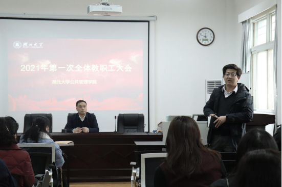 2021年3月3日下午,bevictor伟德国际召开新学期第一次全体教职工大会。公司党委书记唐良敬主持会议。