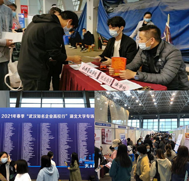 伟德国际唯一官网2021届“湖北百校联动”毕业生春季大型供需见面会现场