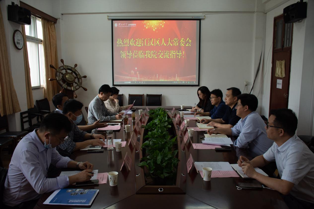 4月26日下午,江汉区人大常委会党组书记、主任何裕生,副书记、副主任刘惠平等一行莅临公司交流指导。公司党委书记唐良敬、党委副书记肖勇、副经理张小进、行政管理系主任向良云、MPA教育中心办公室主任卿菁参加会议。