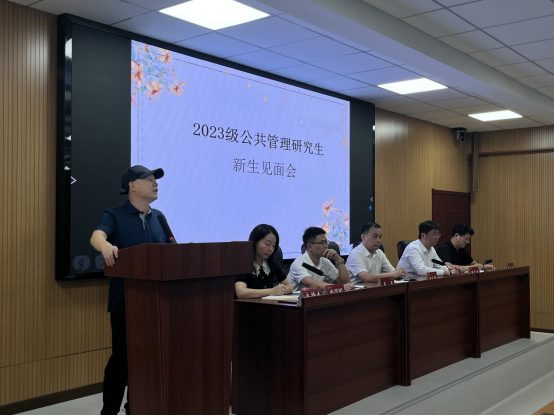 会上,2023级研究生新生代表结合自身经历发言交流。“只要自己认真去做,就肯定会收获”“我们将在导师的指导下,努力增强自身创新能力、实践能力和科研能力”行政管理专业王镇东、刘银向公司公司表达了感谢之情、向与会老师表达了感激之意,就自身未来发展规划与同学们进行交流分享,号召坚守初心、立志求学,争做有理想、敢担当、能吃苦、肯奋斗的新时代好青年。