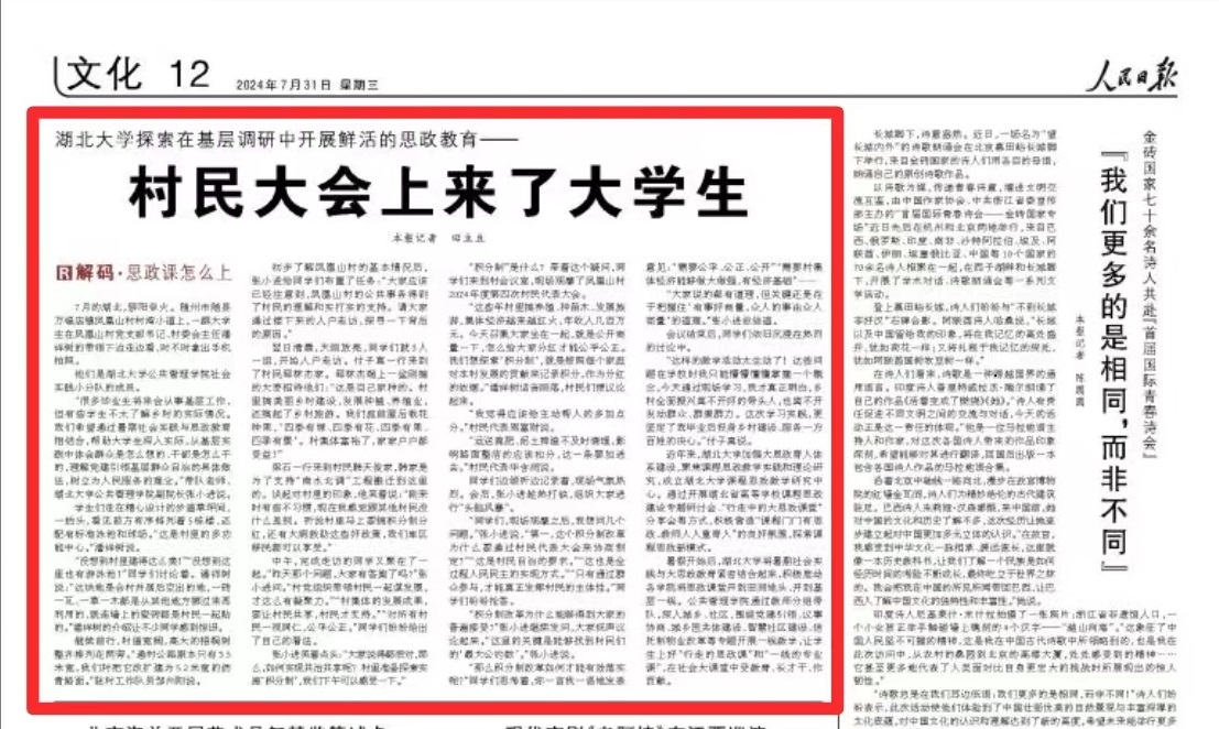 “积分制”是什么?带着这个疑问,同学们来到村会议室,现场观摩了凤凰山村2024年度第四次村民代表大会。