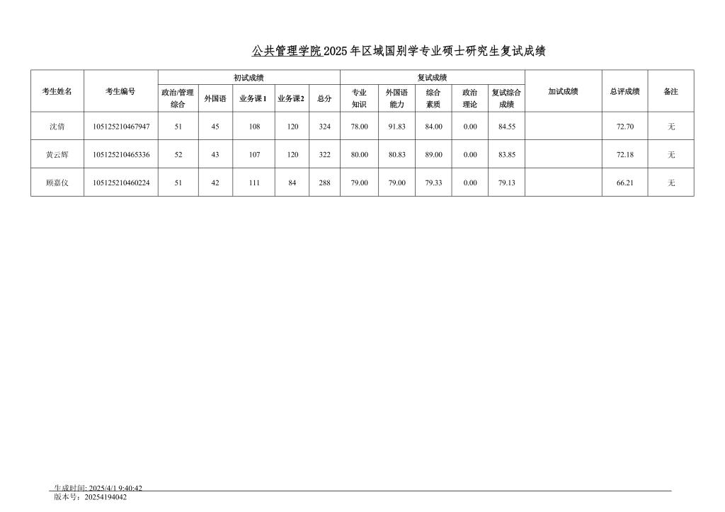 bevictor伟德国际2025年区域国别学研究生复试成绩公示
