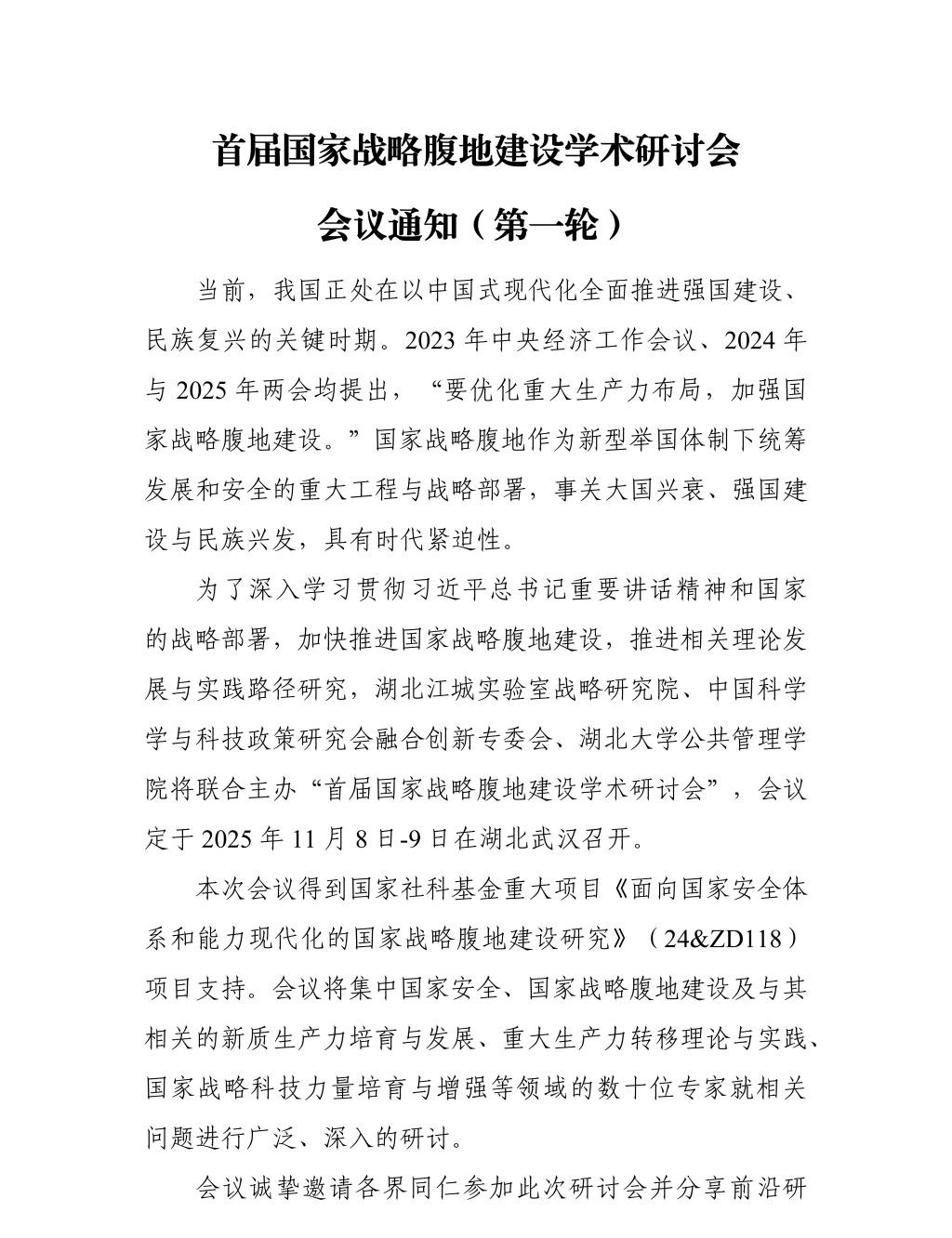首届国家战略腹地建设学术研讨会会议通知(第一轮)