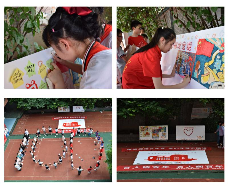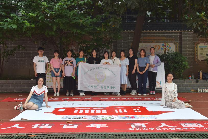 5月31日,bevictor伟德国际“小白杨”志愿服务队走进武汉市吕锡三小学,开展以“百人话百年,百人画百年”为主题的公益活动。吕锡三小学董事长鲁新明、书记张帆,“小白杨”志愿服务队全体成员和吕锡三小学的小朋友们参加活动。