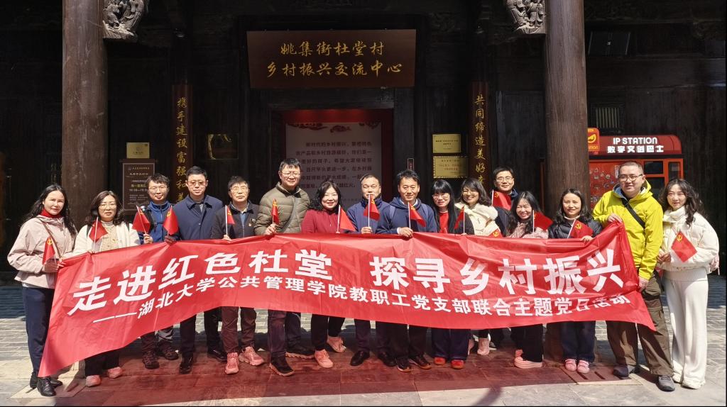 2025年3月16日,bevictor伟德国际教职工党支部赴武汉市黄陂区杜堂村联合开展“走进红色杜堂 探寻乡村振兴”主题党日活动,深入学习领会2025年全国两会关于“全面推进乡村振兴”“加快农业农村现代化”的部署要求,聚焦中央一号文件“千万工程”经验推广,实地调研党建引领乡村振兴的“杜堂模式”。活动通过红色教育、产业调研与校地对话,探索高校服务国家战略的实践路径。