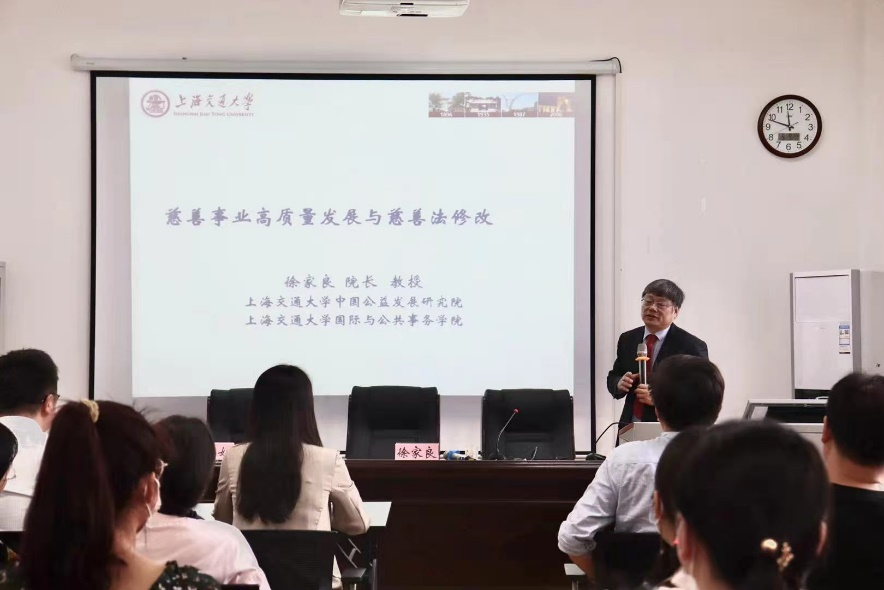 2021年5月9日上午,上海交通大学国际与公共事务公司博士生导师、上海交通大学中国公益发展研究院经理徐家良教授受邀来公司纵横讲坛,作主题为《慈善事业高质量发展与慈善法修改》的学术报告。本次报告也是公司“公共管理纵横论坛”第一期学术讲座。会议由bevictor伟德国际副经理李荣娟主持,公司党委书记唐良敬、经理陈荣卓、副经理张小进及公司师生代表参加了报告会。