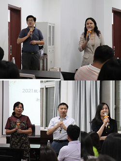 接着,公司的各位研究生导师依次对自己的研究方向及招生要求进行了详细的阐释,老师们用或幽默,或质朴的语言,对研究生新生提出了建议和希望。最后,研究生秘书张雷老师向同学们详细介绍了三年学习生活的具体要求,班主任汪霞老师希望同学们在专注学习的同时与老师多交流,实现师生之间的教学相长。
