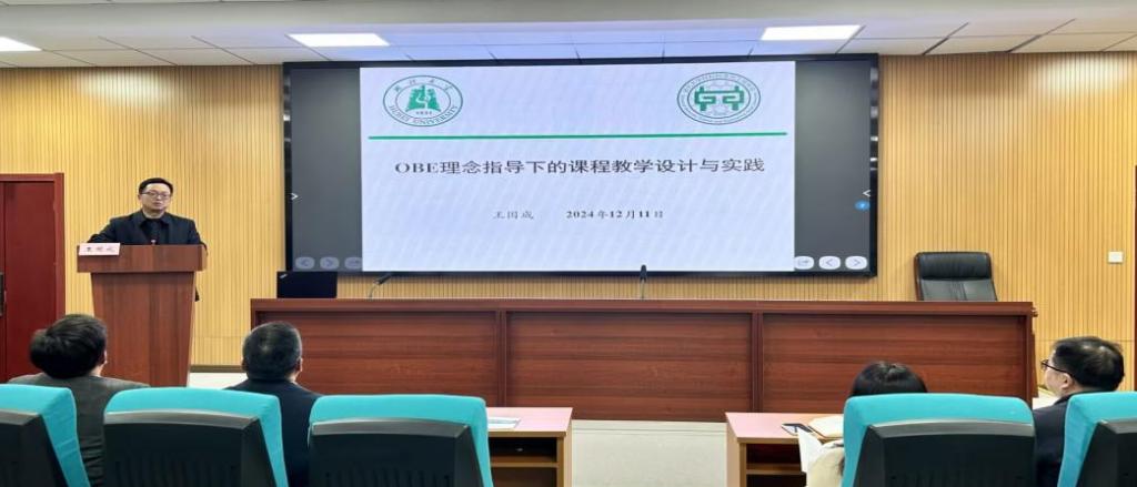 为扎实推进新一轮本科公司产品审核评估工作,12月11日下午,公司邀请本科生院副经理王国成教授在逸夫楼C座518会议室举办“OBE理念指导下的课程教学设计与实践”的专题报告,全体公司领导、全院教师参加报告会,公司党委书记唐良敬主持会议。