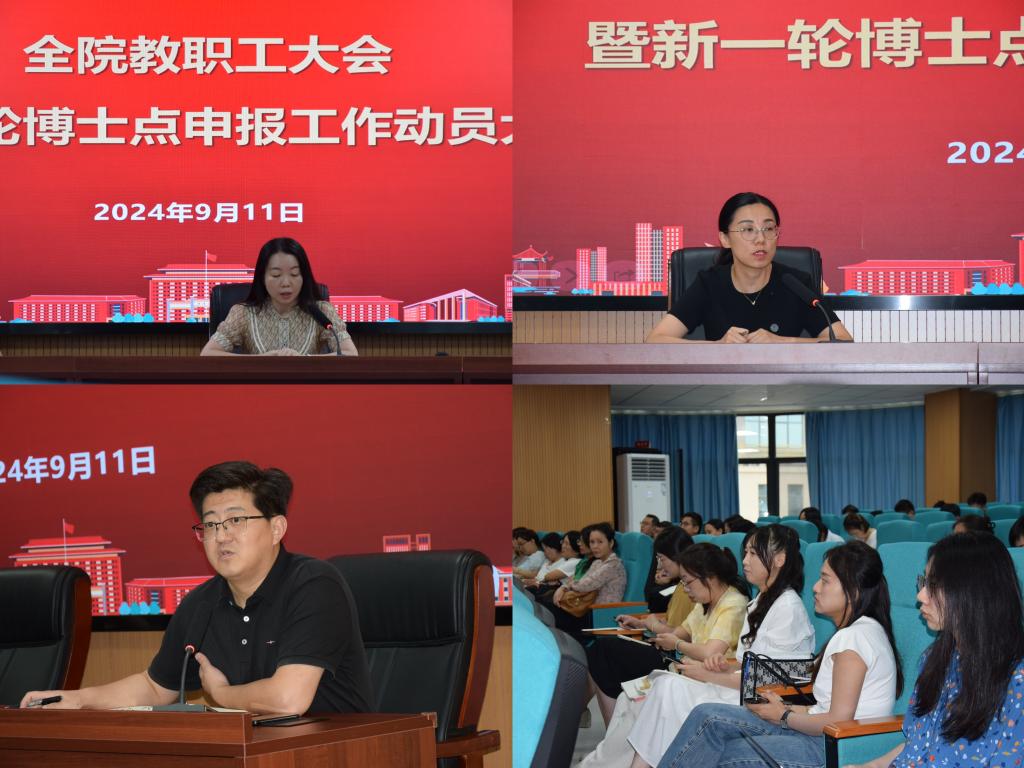 9月11日,公司2024年秋季学期第一次教职工大会暨新一轮博士点申报工作动员大会顺利召开。经理李荣娟、党委副书记余欢、副经理张小进出席会议。